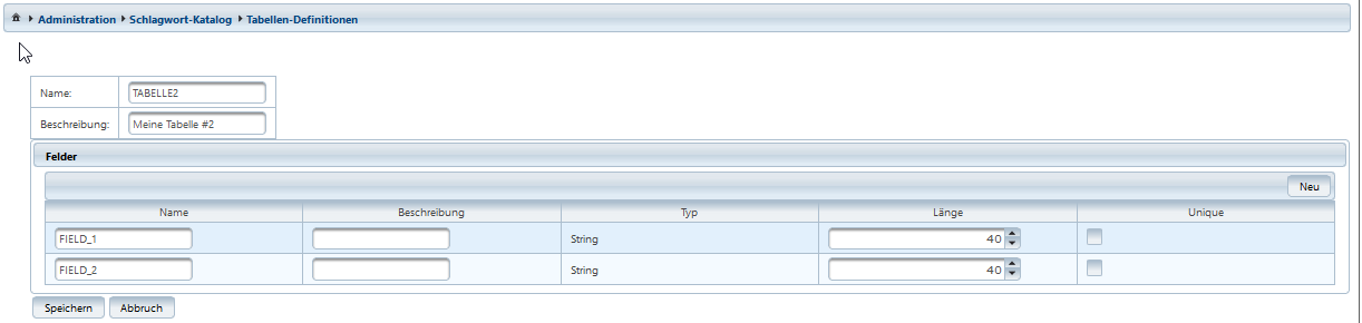 Schlagwort-Kataloge sind Datenbanktabellen, die zur Laufzeit angelegt, aktualisiert oder gelöscht werden können.