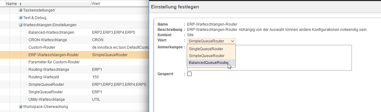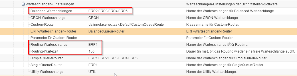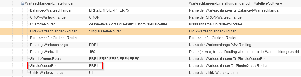 Die Haupteinstellung bzw. steuernde Einstellung in der Kategorie "Warteschlangen-Einstellungen" ist der "ERP-Warteschlangen-Router".