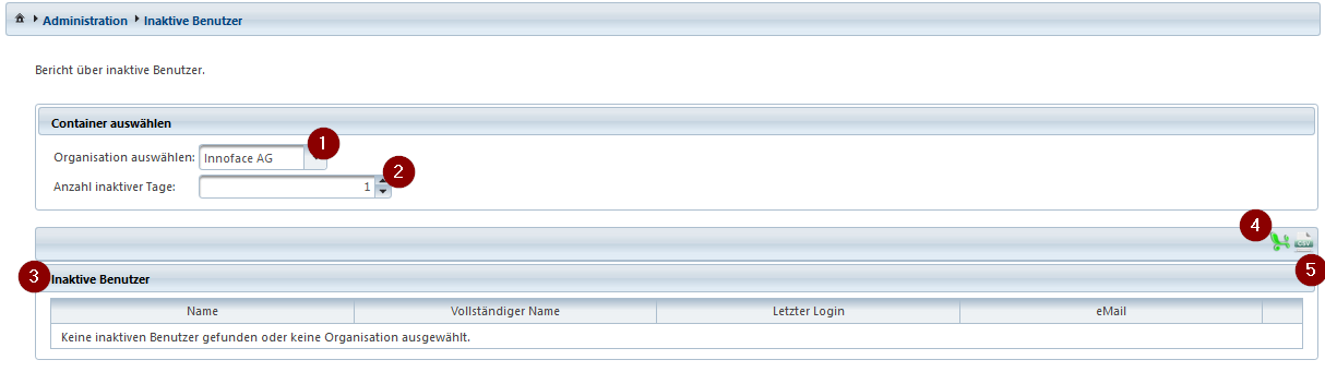 1. Selektion der Organisation, für die die inaktiven Benutzer angezeigt werden sollen.