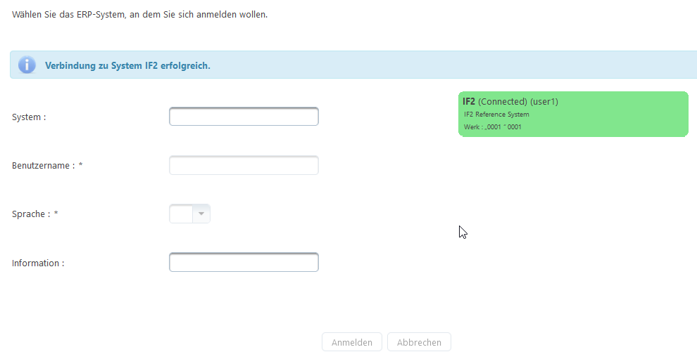 Auf dieser Seite ist die Anmeldung an ein angebundenes ERP-System via IFConneX Schnittstelle möglich.