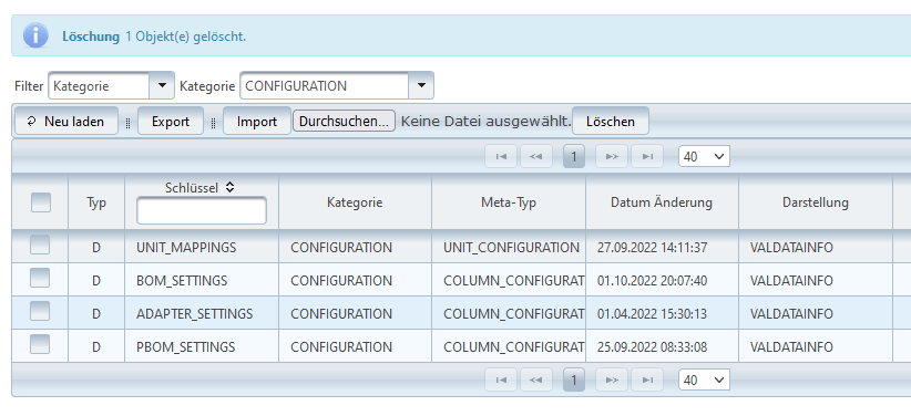 Nach erfolgreicher Löschung wird über der Tabelle eine Info-Meldung angezeigt.
