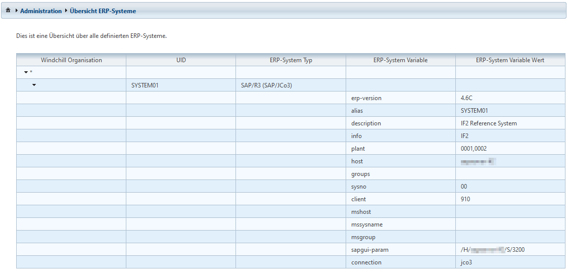 Auf dieser Seite können definierte ERP Systeme gesichtet werden.