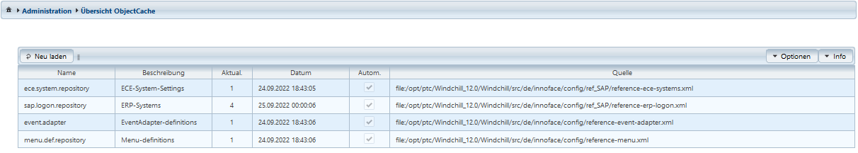 Der ObjectCache wird vom DataServer verwaltet. Er beinhaltet komplexe Konfigurationen, die im kompletten Windchill System zur Verfügung stehen. In der erzeugten Übersicht ist ersichtlich, welches Objekt des Caches zu welchem Zeitpunkt aktualisiert worden ist.