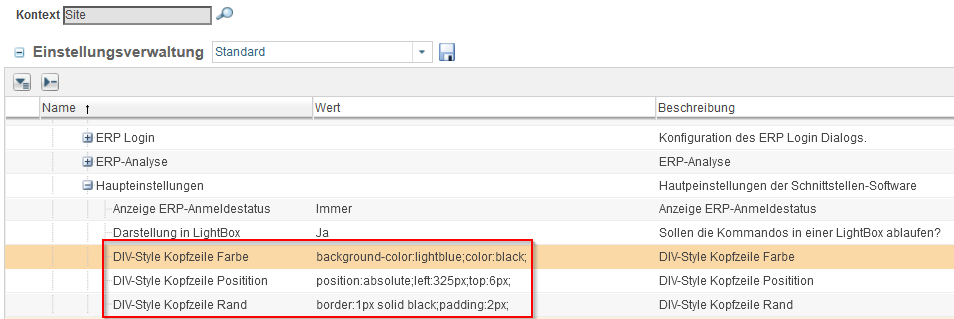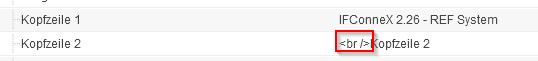 Da Windchill ein Limit von 80 Zeichen pro Einstellung hat, stehen Kopfzeile 2 - 6 zur Verfügung, um längeren Text konfigurieren zu können. Es werden keine Zeilenumbrüche zwischen den Kopfzeilen eingefügt. Ein Zeilenumbruch kann via HTML Code (<br />) eingefügt werden.