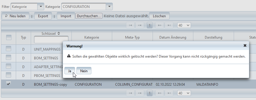 Auch hier wird zunächst gefragt, ob die Einträge wirklich gelöscht werden sollen.