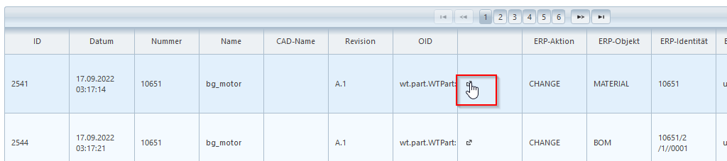 Über das Icon in der mittleren Spalte neben der OID kann auf die Infoseite des Windchill-Objekts abgesprungen werden.