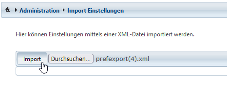 Zuvor mittels IFConneX → Administration → Export exportierte Einstellungen können hier wieder importiert werden.