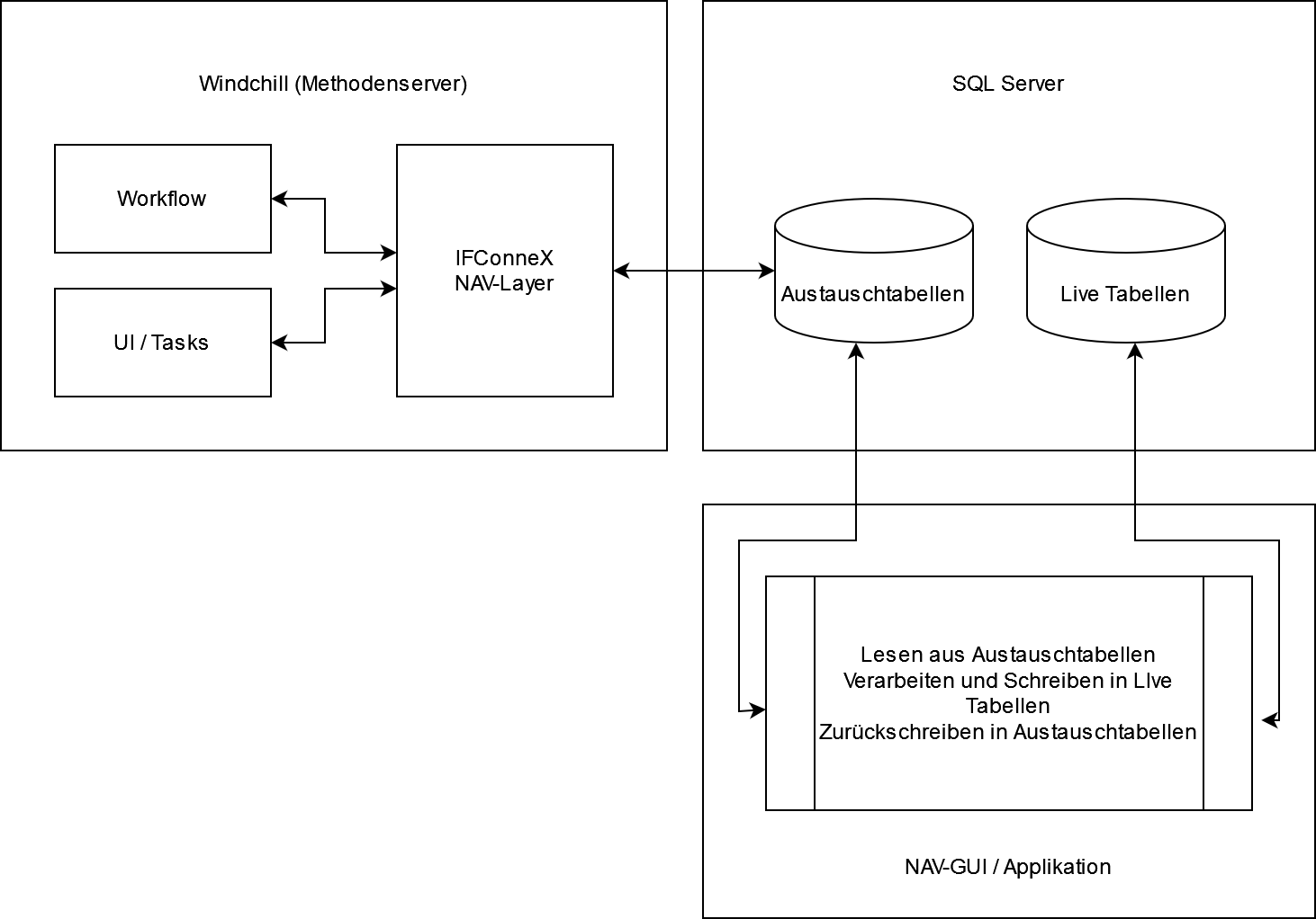 Die IFConneX-Schnittstelle für Navision-Systeme arbeitet mit Austauschtabellen. Diese Austauschtabellen befinden sich in der selben Datenbank-Instanz wie das zu integrierende Navision-System. Der gesamte Informationsaustausch findet über diese Austauschtabellen statt.