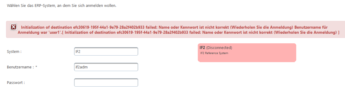 Auf dieser Seite ist die Anmeldung an ein angebundenes ERP-System via IFConneX-Schnittstelle möglich.