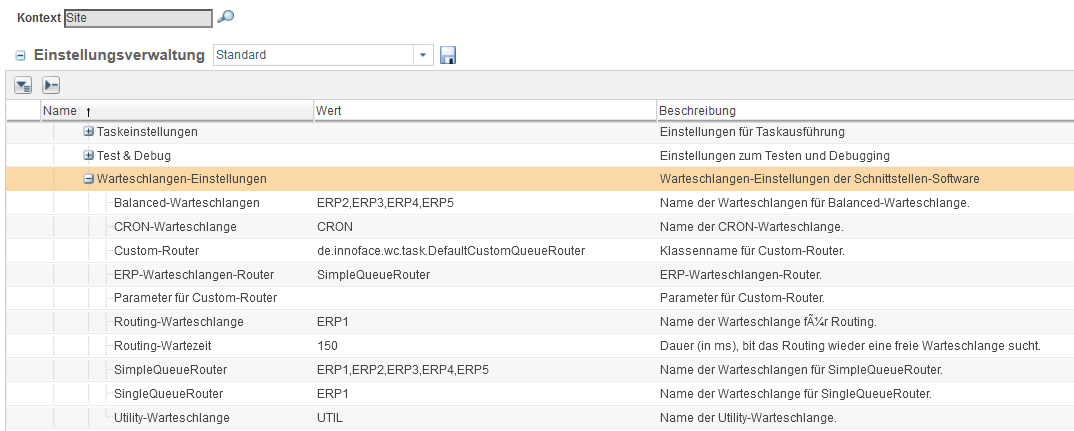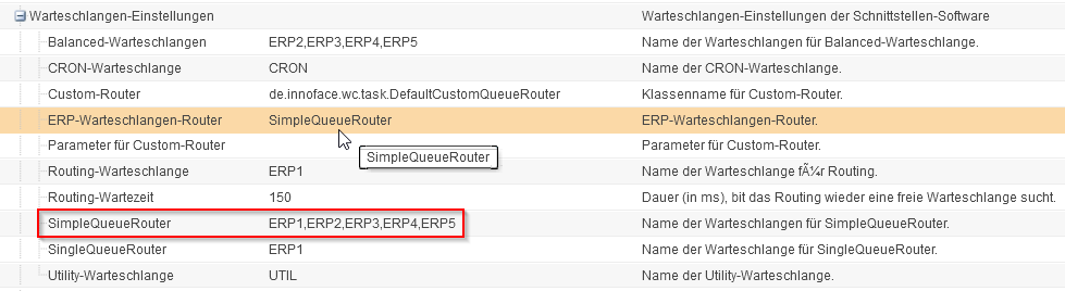 Die Haupteinstellung bzw. steuernde Einstellung in der Kategorie "Warteschlangen-Einstellungen" ist der "ERP-Warteschlangen-Router".
