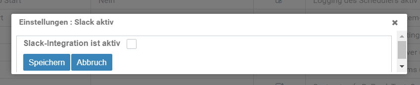 - Slack aktiv: Slack-Integration ist aktiv, wenn hier Ja eingestellt wurde. Anderenfalls sind alle anderen Einstellungen zu Slack ohne Wirkung
