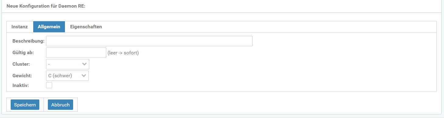 Hier wurde z.B. die Daemon-Instanz RE ausgewählt. Der Daemon kann im Tab "Instanz" weiter konfiguriert werden, bzgl.: