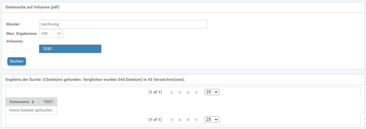 Abbildung: Dateisuche auf Volumes und Ergebnis der Suche