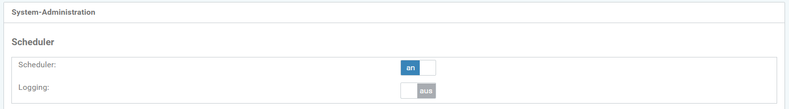 Scheduler und Logging können mit Switch-Buttons an- oder ausgeschaltet.
