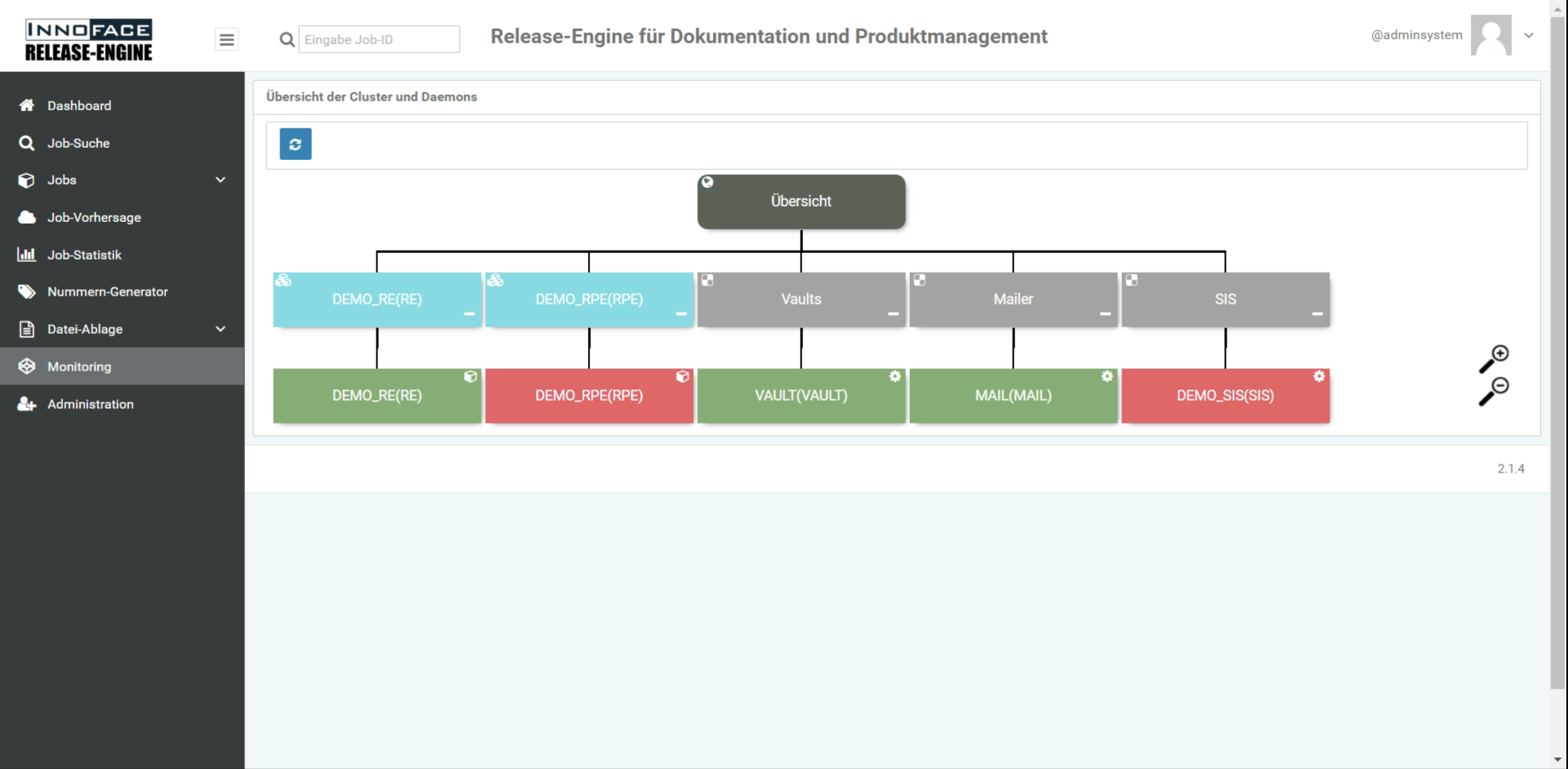 Zeigt alle Daemons und Cluster mit ihren Zuständen im Überblick.