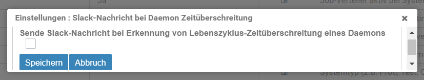 Abbildung: Editierbare Systemeinstellungen, Benachrichtigungen , Slack-Nachricht bei Daemon Zeitüberschreitung
