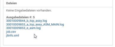 Hier können beliebig viele Dateien abgelegt sein, die durch den Job erzeugt wurden. Dies können bspw. Log-Dateien oder generierte Neutralformate (PDF, TIFF) sein.