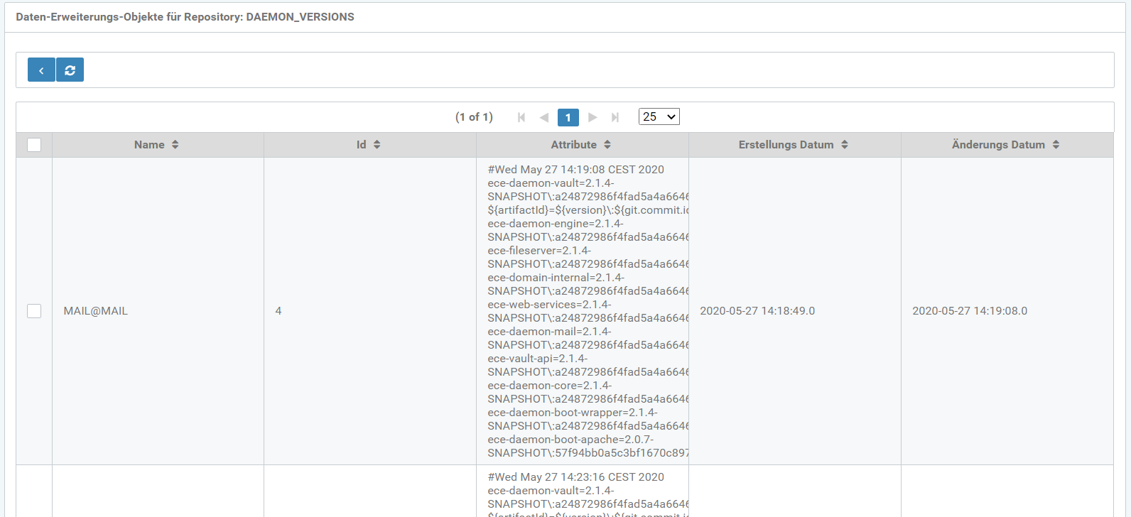des ausgewählten Repositories. Hier z.B. das Repository DAEMON_VERSIONS.