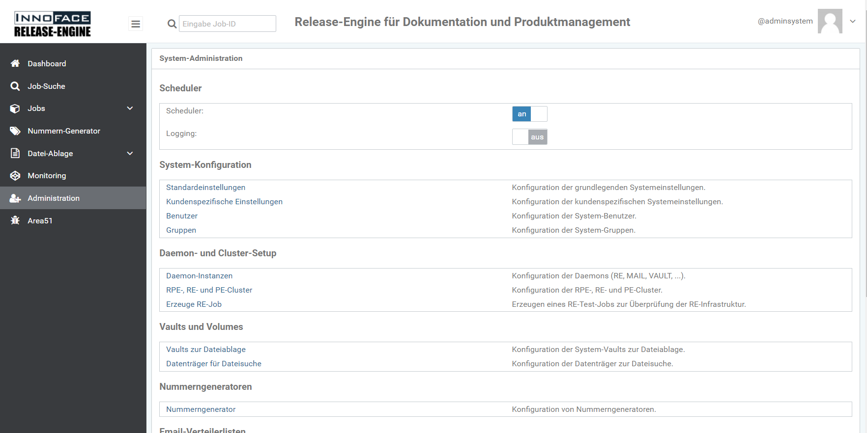 Innerhalb der Administration können folgende Konfigurationen vorgenommen werden: