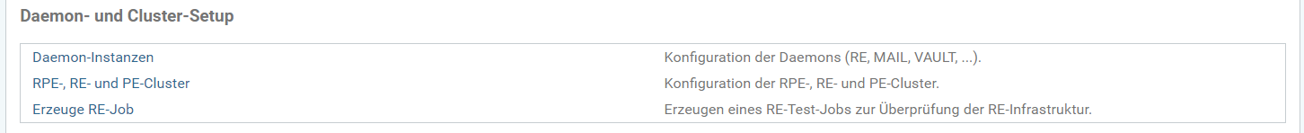 Innerhalb des Bereiches Daemon-Instanzen können verschiedene Daemons konfiguriert werden. Es gibt die Typen RE, RPE, VAULT, MAIL und SIS.