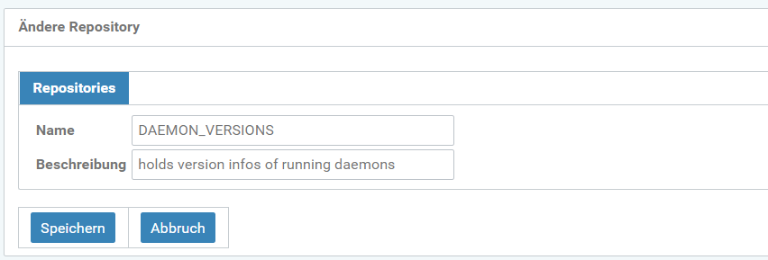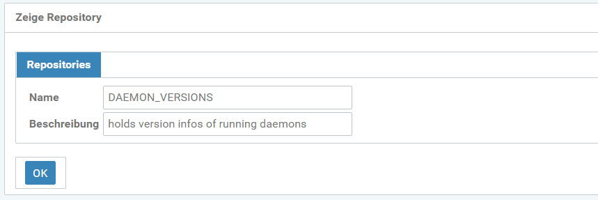 des ausgewählten Repositories. Hier z.B. das Repository DAEMON_VERSIONS.