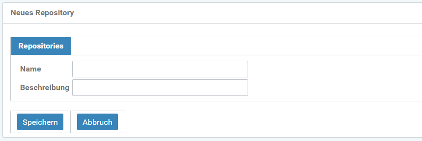 Über das +-Symbol kann ein neues Repository angelegt werden. Hier öffnet sich ein Fenster in dem der Name und eine Beschreibung des Repositories angegeben werden kann.