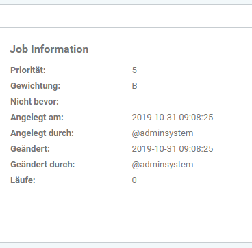 - Priorität: Zeit die Priorität mit der ein Job verarbeitet werden soll.