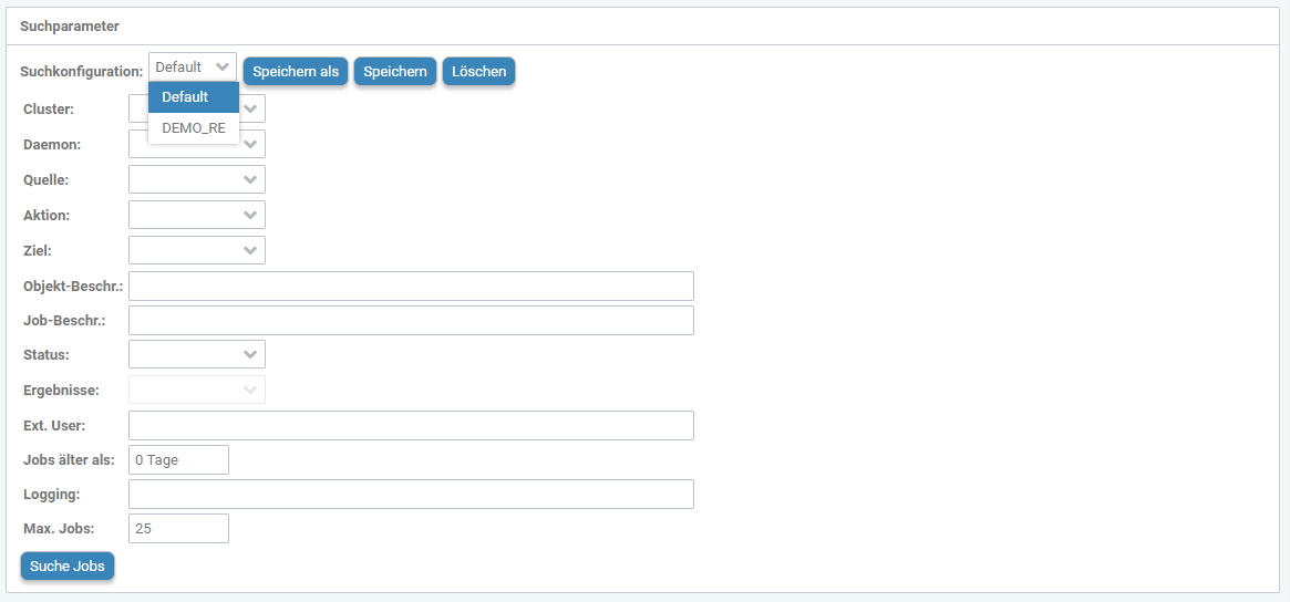 Sind alle gewünschten Änderungen bzw. Anpassungen bei den Suchparametern konfiguriert worden, kann diese Suchkonfiguration gespeichert werden: