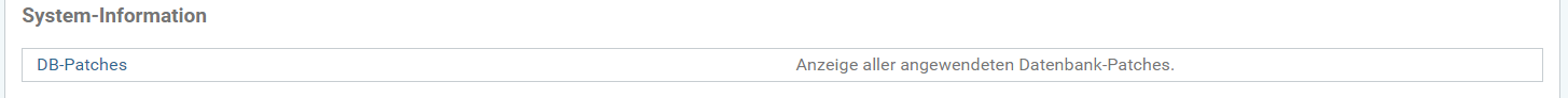 Abbildung: Einstiegsbereich System-Informationen der angewendeten DB-Patches