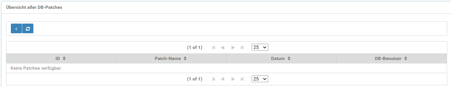 Bereits erstellte DB-Patches werden in einer Tabelle gezeigt.