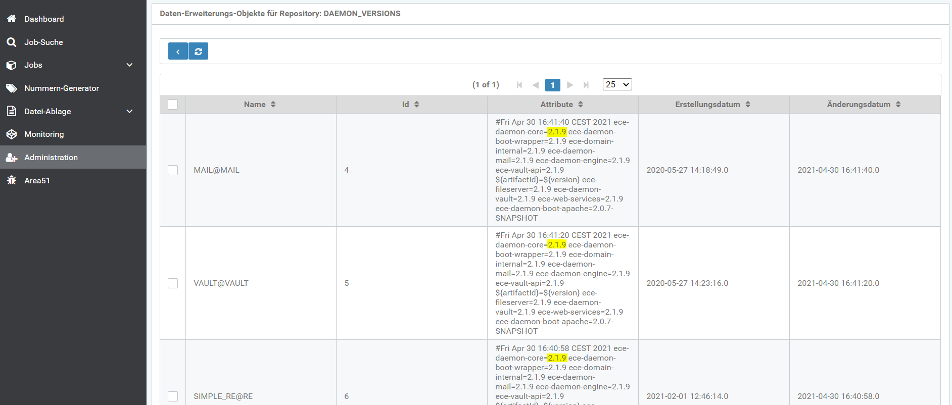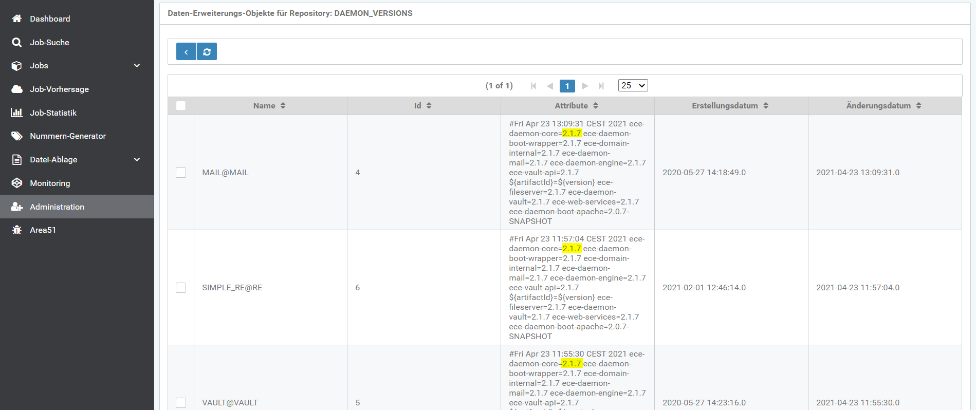 Nach dem erfolgreichen Update der Daemons kann man die neue Version des Daemons im RE-Cockpit sehen.