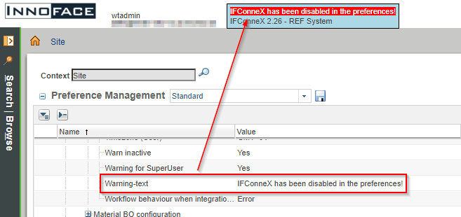 A warning is displayed if IFConneX is deactivated. This warning can be configured.