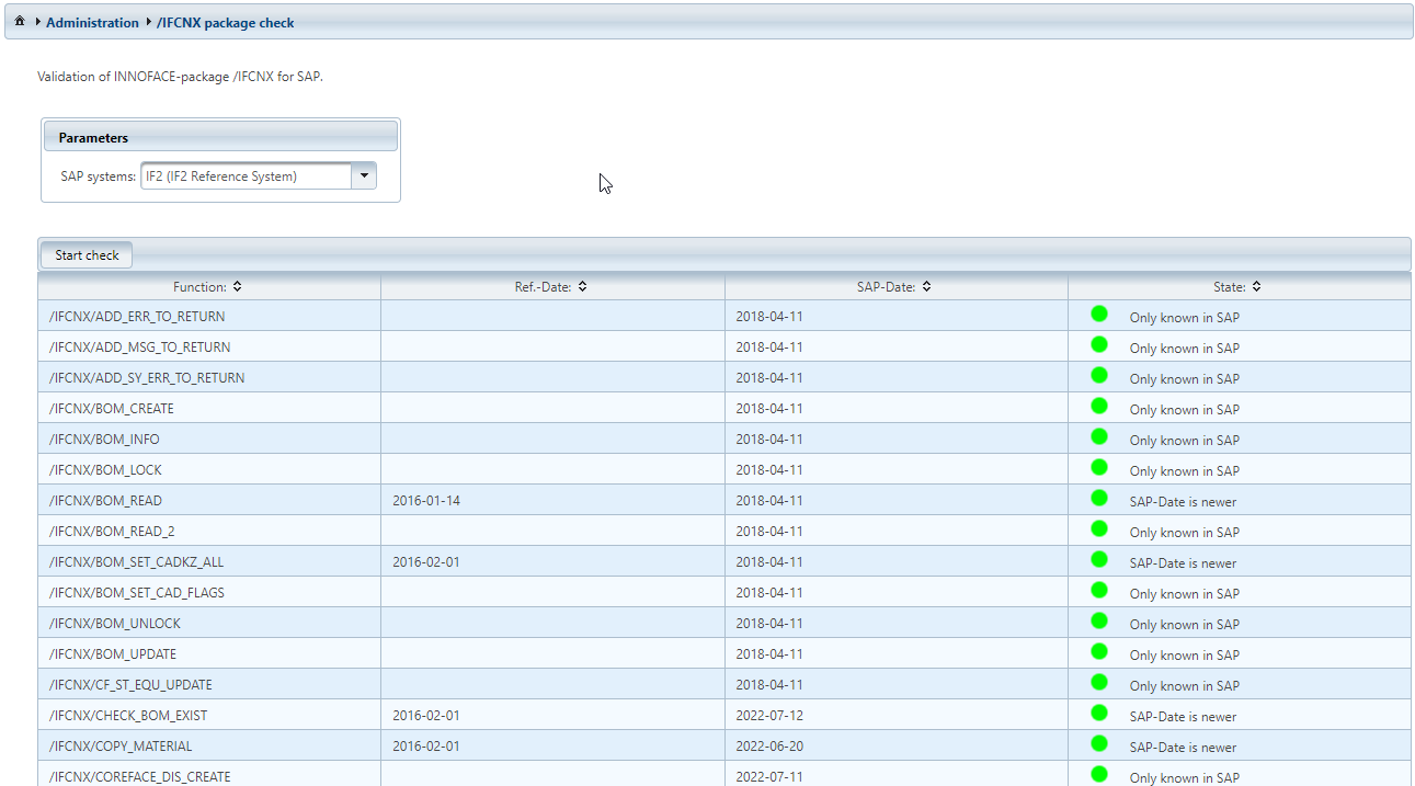 With this function, a Windchill system administrator can verify for a logged on SAP system whether it has the necessary function modules.