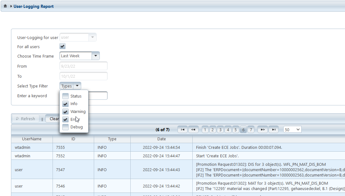 To filter for entries with a certain content, keywords can be entered. The input has to be confirmed with ENTER.