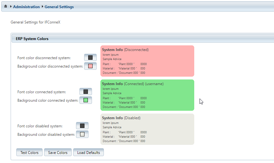 The colors for the logon state to the ERP system can be defined here. The following states are available: