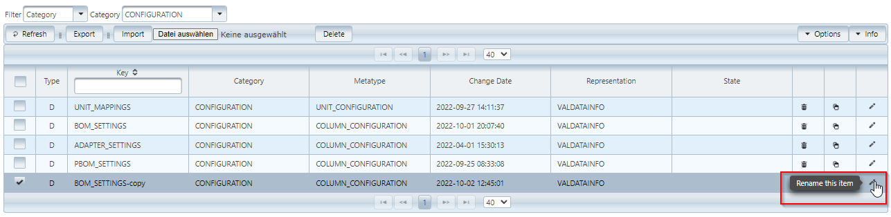 An object can be renamed in the Key-Value-Store by using the pencil symbol in the last column.