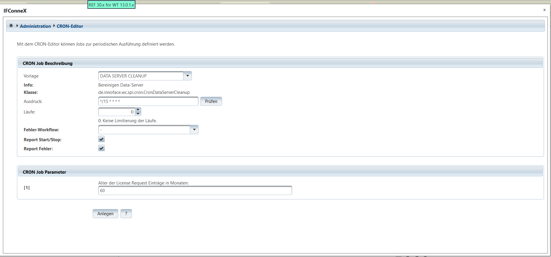 The DATA SERVER CLEANUP template can be used to delete obsolete "License Requests" from the database table. This serves to clean up the data server.
