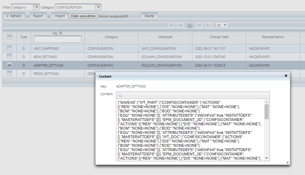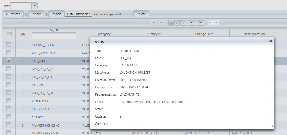 • The column Metatype displays a logical name representing the data. Therefore, similar to the category, the objects can be ordered causally, e.g. rules to VALIDATION_RULE and rulesets to VALIDATION_RULESET.