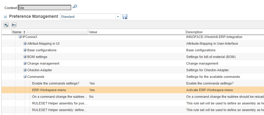 The IFConneX ERP menu in the workspace can be hidden here INNOFACE → IFConneX → Commands.