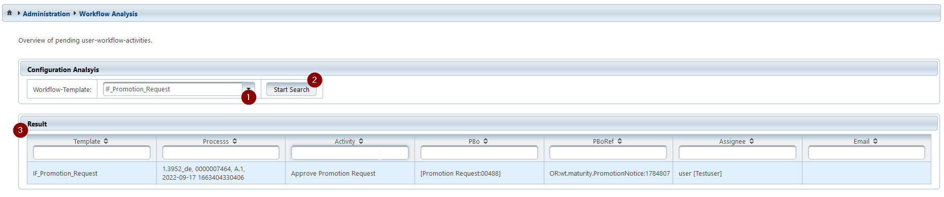 - Start of the search for the pending processes with the defined workflow template.