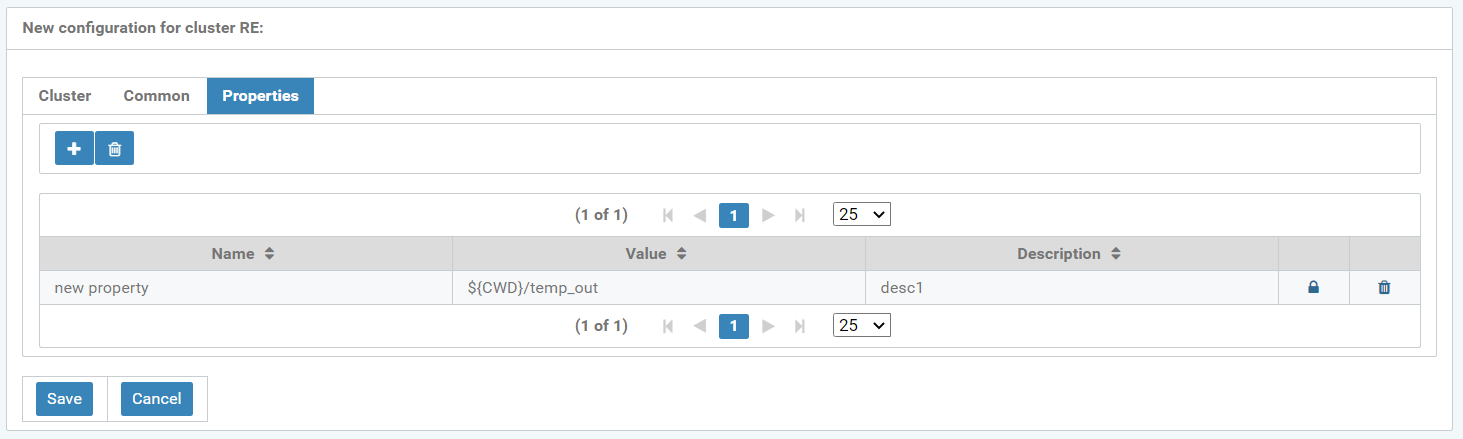 Figure: Cluster configuration display, type RE, "Properties” tab