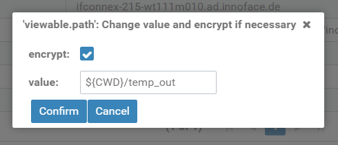 Figure: Pop-up window "Change value and encrypt if necessary"