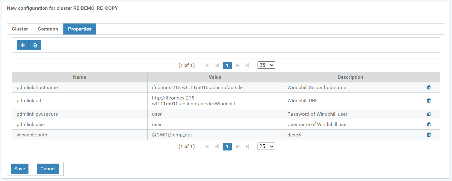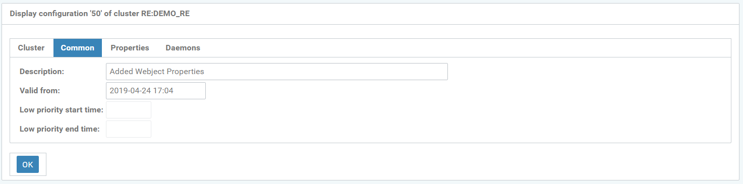 Figure: New configuration for cluster RE:DEMO_RE_COPY, “Properties” tab