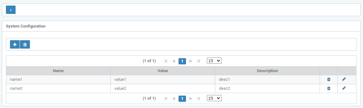 Delete the created system configuration with the Recycle Bin icon at the end of the table row.
