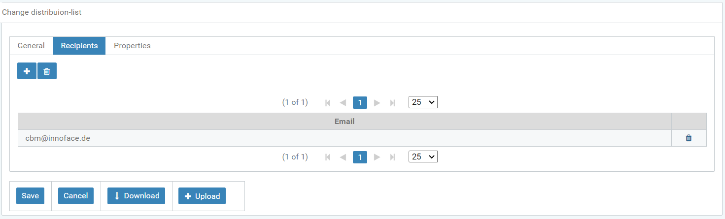 Use the "+" icon in this area to add and enter the recipients of the distribution list. The import function can also upload this recipient list.