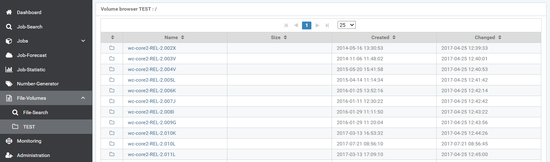 In the Pattern input field, you can enter a search pattern without a file extension. This initiates a search for all files of the type shown above with the particular pattern. The following figure shows a search for PDF files that have the word "installation" in their name. We selected “TEST" as the disk. At this point, all data carriers/disks that have been created in Administration appear and can be selected for search.