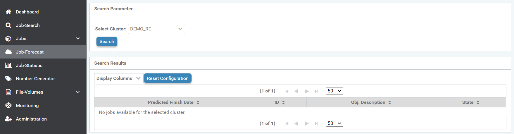 Job forecast, can create a query about the expected processing of jobs by clusters.