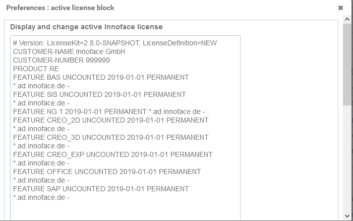 To replace the active license, the complete text has to be overwritten with the content of the new license file. The license file can be opened with any text editor.