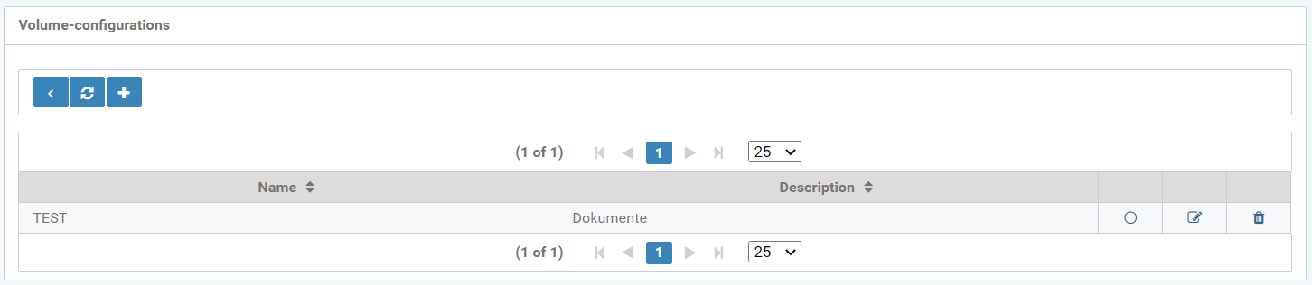 The icons for “Back to previous page”, “Update overview” and “Create new volume configuration” are at the top.