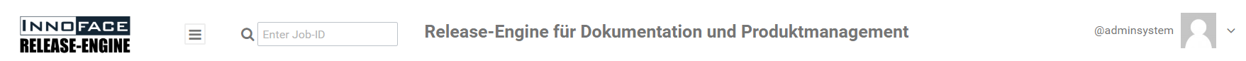 The left side shows the product name of the ReleaseEngine cockpit. In the middle, find the special name of the system, which can be specified by the administrator in the Standard-Preferences .